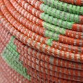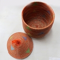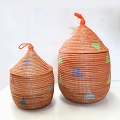 セネガルかご 蓋つき とんがり 三角柄 大 オレンジ
