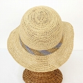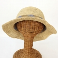 【SALE】ラフィアかぎ編み帽子つば6 楕円 斜めバンド 青系 @7500→6000