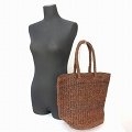 ラフィアトート アフガン編み風 四角底 焦げ茶