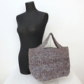 ラフィアかぎ編みバッグ 変わり編み 2本ライン 青系