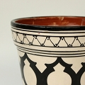 モロッコ陶製植木鉢 小 アラベスク柄 白ベース黒