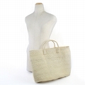 サイザルバッグ共手無地楕円トート横長16x6x12 生成