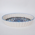 スラマ陶器 手描きグラタン皿 ターコイズ