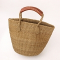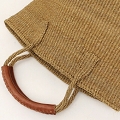 サイザルバッグ共手無地9インチ ハンドル革巻き カーキ