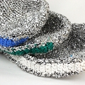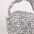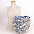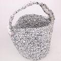 シルバーかぎ編みバッグ9インチ シルバーx白プラ平ハンドル