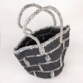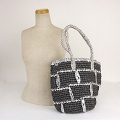 【SALE】プラスチック鍵編みバッグ共手8x12 ストライプ グレーxシルバー @5800→5000