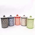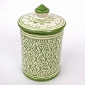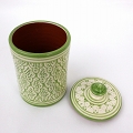 サフィ陶製小物入れ蓋付 伝統柄 大 黄緑