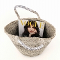 羊毛サイザルバッグ12インチ 羊毛シルバーハンドル ミックスグレー