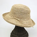 ラフィア細編み帽子楕円 つば9 ナチュラル