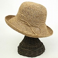 ラフィア細編み帽子楕円 つば9 紅茶