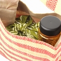 ラフィアラバンバッグ 結び目ハンドル 赤
