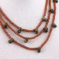 3連小ビーズ真鍮豆ネックレス 茶 一点もの