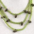 3連小ビーズ真鍮豆ネックレス 黄緑 一点もの