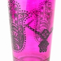 モロッコプリントグラス 1個売り 黒ファティマ手 ピンク