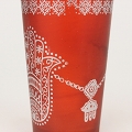 モロッコプリントグラス 1個売り 銀ファティマ手 オレンジ