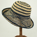 【SALE】ラフィア細編み帽子楕円 つば10 ボーダー インディゴ @8300→6640