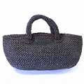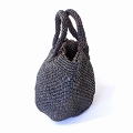 ラフィアかぎ編みバッグ 横長かぶせ透かし付き 黒