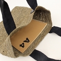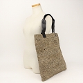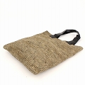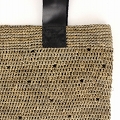 ラフィアかぎ編みバッグ ランダム穴平革ハンドル 黒手