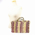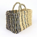 ストロー横長カゴ S ドームハンドル 柄1 黒