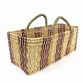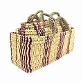 ストロー横長カゴ L ドームハンドル 柄2 フシア