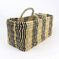 ストロー横長カゴ M ドームハンドル 柄2 黒