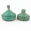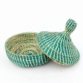 【SALE】エチオピアバスケット 小 円とんがりふた付き 白緑 @2400→1600