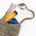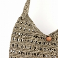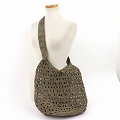 ラフィアかぎ編みバッグショルダー 透かしボーダー 紅茶グレー