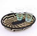 ラフィアトレイ 楕円 ベージュ黒