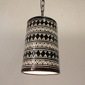 陶製ランプシェード 筒型 SAFI 直径12CM アフリカ柄モノトーン ランプソケットA