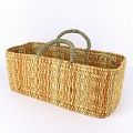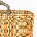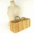 ストロー横長カゴ L ドームハンドル 柄2 黄