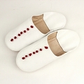 バブーシュ無地 カフス付 39 白革 赤カフスボタン