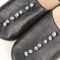 バブーシュ無地 カフス付 39 黒革 シルバーカフスボタン