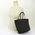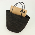 サイザルバッグ9インチ 平細革ハンドル黒一本スティッチ 黒