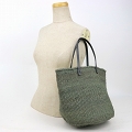 サイザルバッグ9インチ 平細革ハンドルグレー一本スティッチ グレー