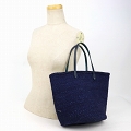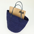 サイザルバッグ9インチ 平細革ハンドル濃紺一本スティッチ 濃紺