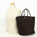 【SALE】アクリルxサイザルバッグ12インチ 丸革ハンドル焦げ茶 焦げ茶 @6500→4500円