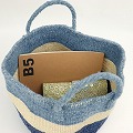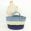羊毛サイザルバッグ共手12x8 ボーダー 濃紺x生成サイザルxサックス