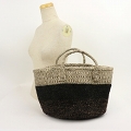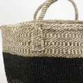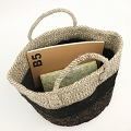 羊毛サイザルバッグ共手12x8 ボーダー 焦げ茶x黒サイザルxミックスグレー