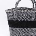 羊毛アクリルサイザルバッグ共手8インチ ミックスワンボーダー ミックスグレー羊毛x黒アクリル