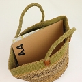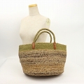 羊毛バナナバッグ12x8 茶革パッチハンドル オリーブ