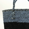 羊毛アクリルサイザルバッグ共手8インチ ミックスワンボーダー サックス羊毛x黒アクリル