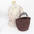 サイザルバッグ共手9インチ ハンドル革巻き黒 焦げ茶