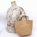 サイザルバッグ共手9インチ ハンドル革巻き生成 クリーム