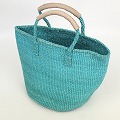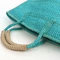 サイザルバッグ共手9インチ ハンドル生成革巻き ミント