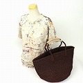 サイザルバッグ共手12インチ ハンドル生成革巻き ダークブラウン