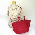 サイザルバッグ共手12インチ ハンドル革巻き生成 赤