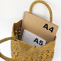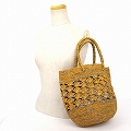 ラフィアかぎ編みバッグ 松透かし2本引編 丸底 紅茶グレーやまぶき