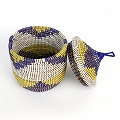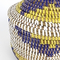 セネガルカゴ とんがり蓋付き ジグザグ三角柄 小 紺