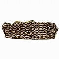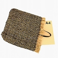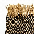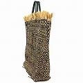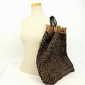 ラフィアコットン布バッグ 革ハンドル縁フリンジ ひし形 黒ベージュ