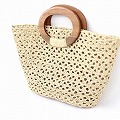 ラフィア トレッセバスケット 透かし 木楕円ハンドル